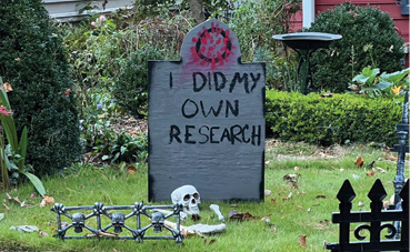Atlanta, Georgia-based New York Times Magazine journalist, Matthew Shaer, noted on Twitter that his neighbours are taking the opportunity to drive home their views on COVID-19, posting a photo of one garden which has a tombstone with the inscription "I did my own research".