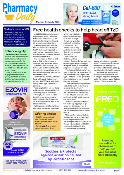 To see the full newsletter, see the embedded issue below or CLICK HERE to download Pharmacy Daily from 14 Jul 25