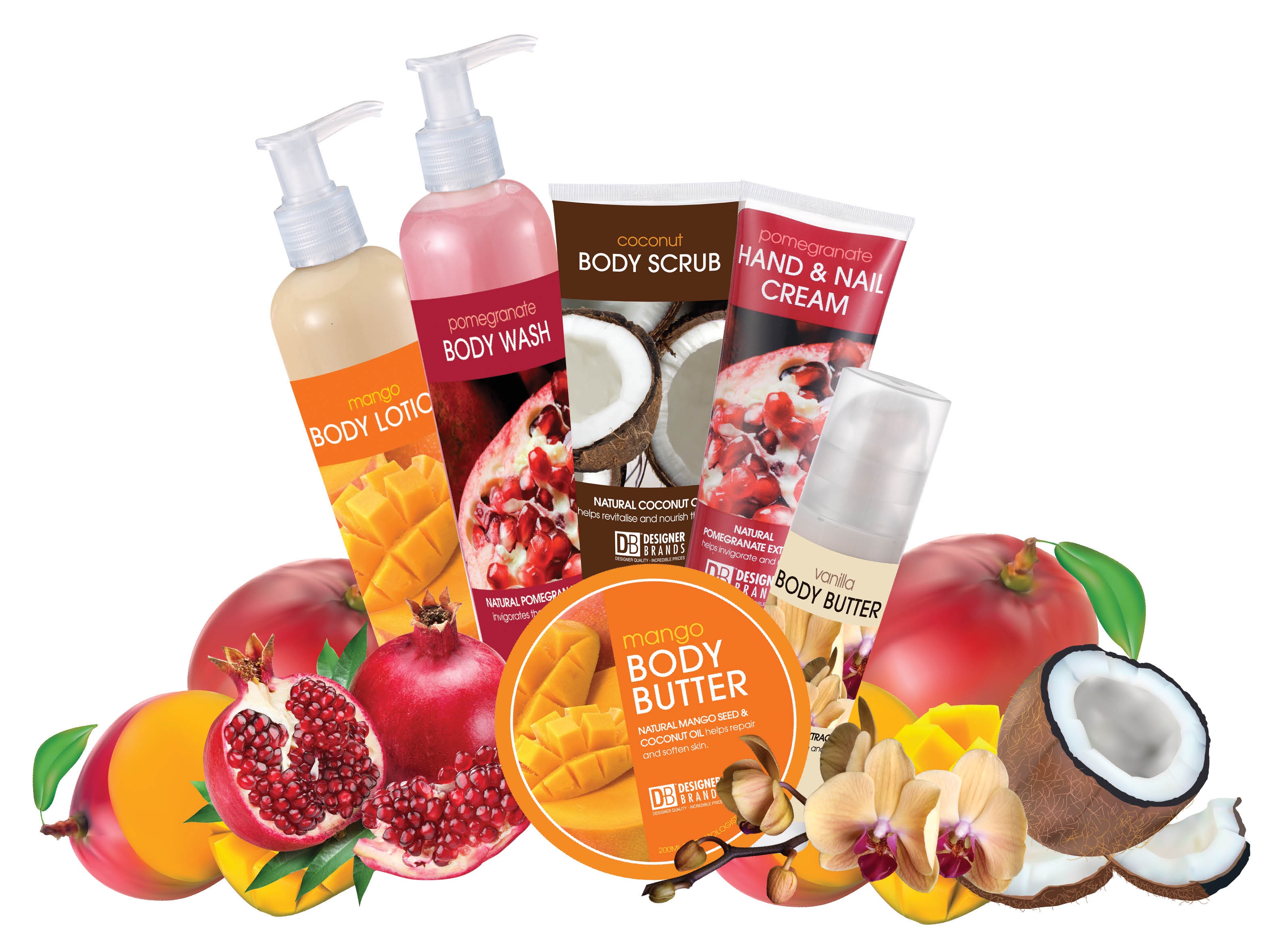 Each prize pack contains: Body Lotion, Body Wash, Body Scrub, Hand & Nail Cream, Body Butter Pump and Body Butter Tub. Designer Brands NEW Bath & Body range has your skincare needs covered!