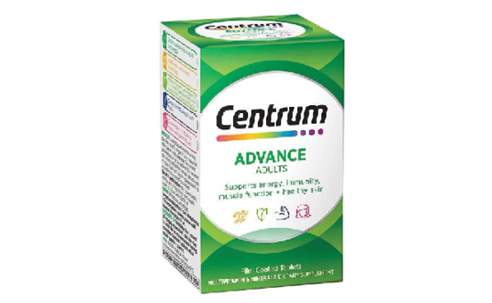 Centrum's line-up of multivitamins includes Centrum Advance which supports energy, immunity, muscle function and healthy skin; Centrum for Women, which also offers immunity and bone health; and Centrum for Men, which includes vitamin D for muscle function and vitamin B6 and folic acid for heart health.