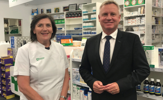 The Guild's Tasmanian President Helen O'Byrne, pictured with the Premier of Tasmania, Jeremy Rockliff, welcomed the decision saying, "currently there is a narrow and restrictive list of medications recognised by the Commonwealth Government covered under the PBS and Tasmania's legislation, where pharmacists may supply without a prescription."