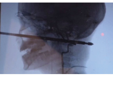 The metal (below) penetrated about 15cm into his skull, but miraculously missed his eyes, brain and major blood vessels.