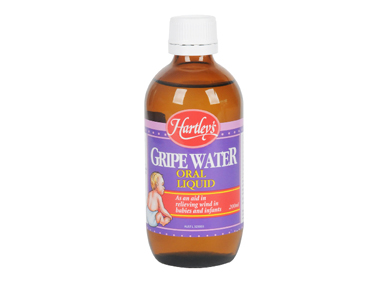 HARTLEY'S Gripe Water is a natural blend of herbal ingredients of dill seed oil, chamomile, coriander 0il & peppermint oil.