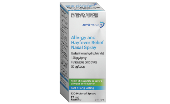 APOHEALTH Allergy & Hayfever Nasal Spray 120 dose is an affordable alternative to Dymista Allergy Nasal Spray, which is used for the treatment of moderate to severe allergic rhinitis (hayfever) symptoms such as sneezing, runny, itchy, and/or blocked nose.