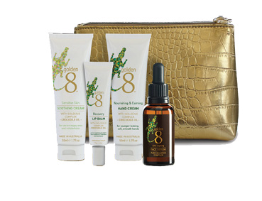 DEHYDRATED skin and plane travel go hand in hand. The dry, pressurised cabin air can wreak havoc on the skin leaving it looking dull, dehydrated and fatigued. Golden 8 has the solution - its new Travel Essentials Kit with four of Golden 8's best-selling products in convenient, easy-to-use sizes. Golden 8 is an booming Australian made and owned skincare brand. The kit contains Soothing Cream, Lip Balm, Hand Cream and Face Serum from Golden 8's premium collection.
