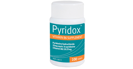 Pyridox contains pyridoxine hydrochloride 25mg (Vitamin B6) per tablet.