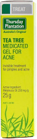 THIS concentrated treatment for acne prone and problem skin penetrates into the skin and helps to dry out acne and pimples. Tea Tree Medicated Gel from Thursday Plantation is ideal for whiteheads, blackheads, pimples and acne. It penetrates into the skin to dissolve blackheads and whiteheads and its concentrated formula can dry out pimples. Thursday Plantation Tea Tree Medicated Gel contains 100% pure Australian Tea Tree Oil, a natural antibacterial ingredient to help control acne. If irritation occurs, discontinue use. Not to be applied to children under 12 months of age. For external use only. Avoid eye contact.